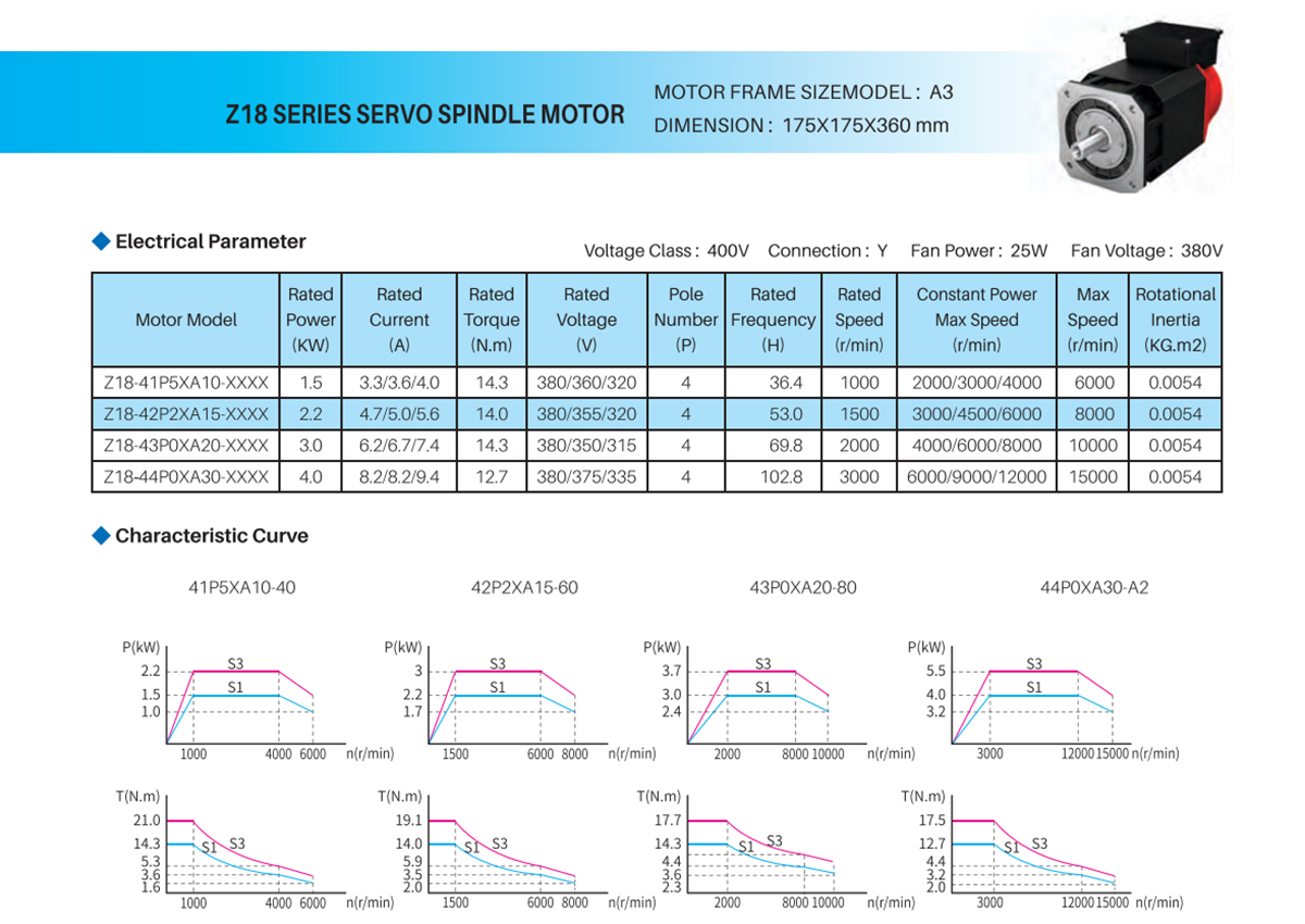 Z18 SERIES SERVO SPINDLE MOTOR—Z18-41P5XA20